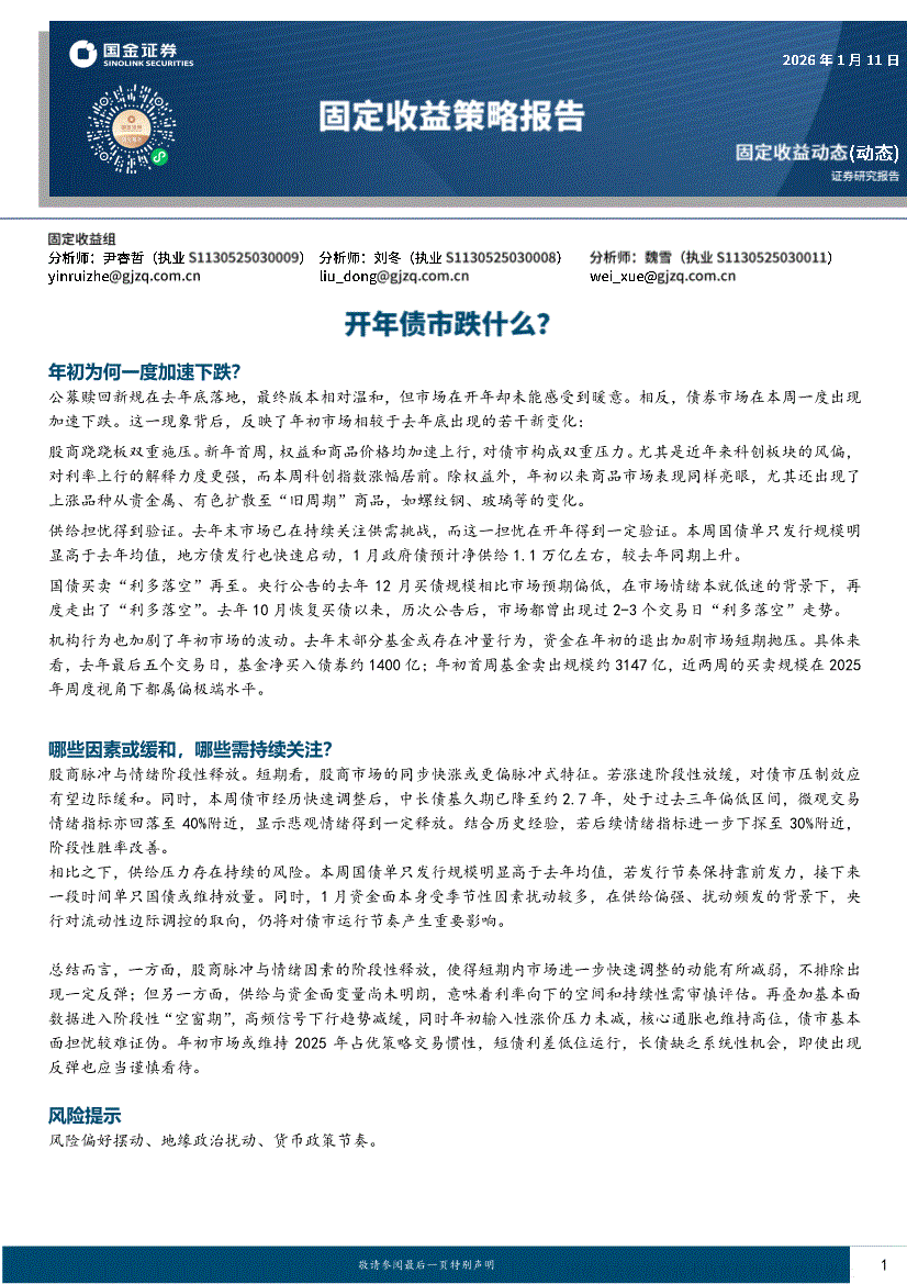 国金证券-固定收益策略报告:开年债市跌什么?-260111