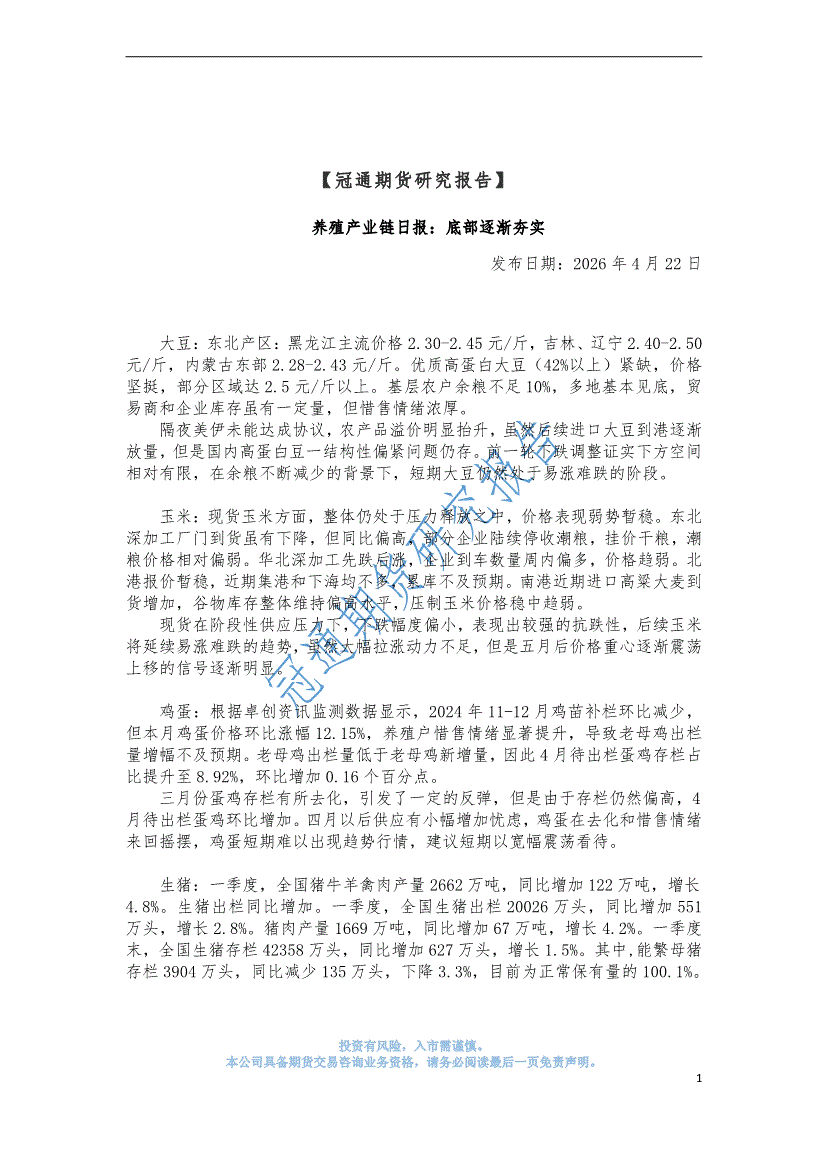 冠通期货-养殖产业链日报:底部逐渐夯实-260422