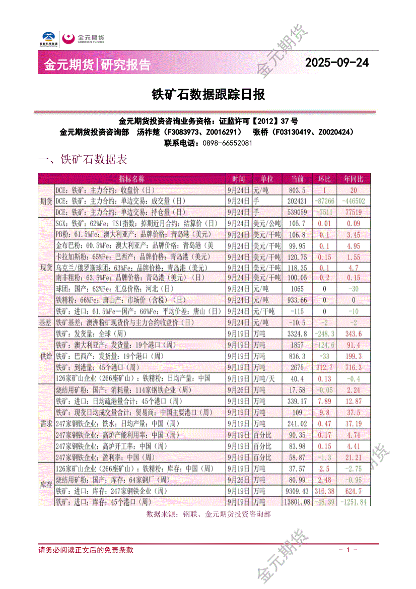 金元期货-螺纹钢产业链数据跟踪日报-250924