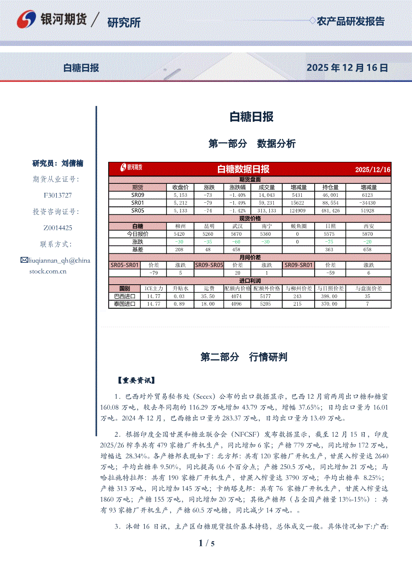 银河期货-白糖日报-251216