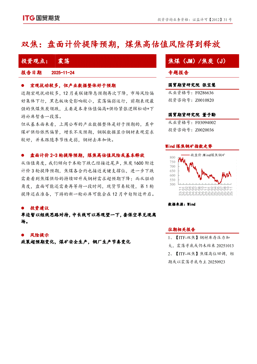 国贸期货-双焦:盘面计价提降预期,煤焦高估值风险得到释放-251124