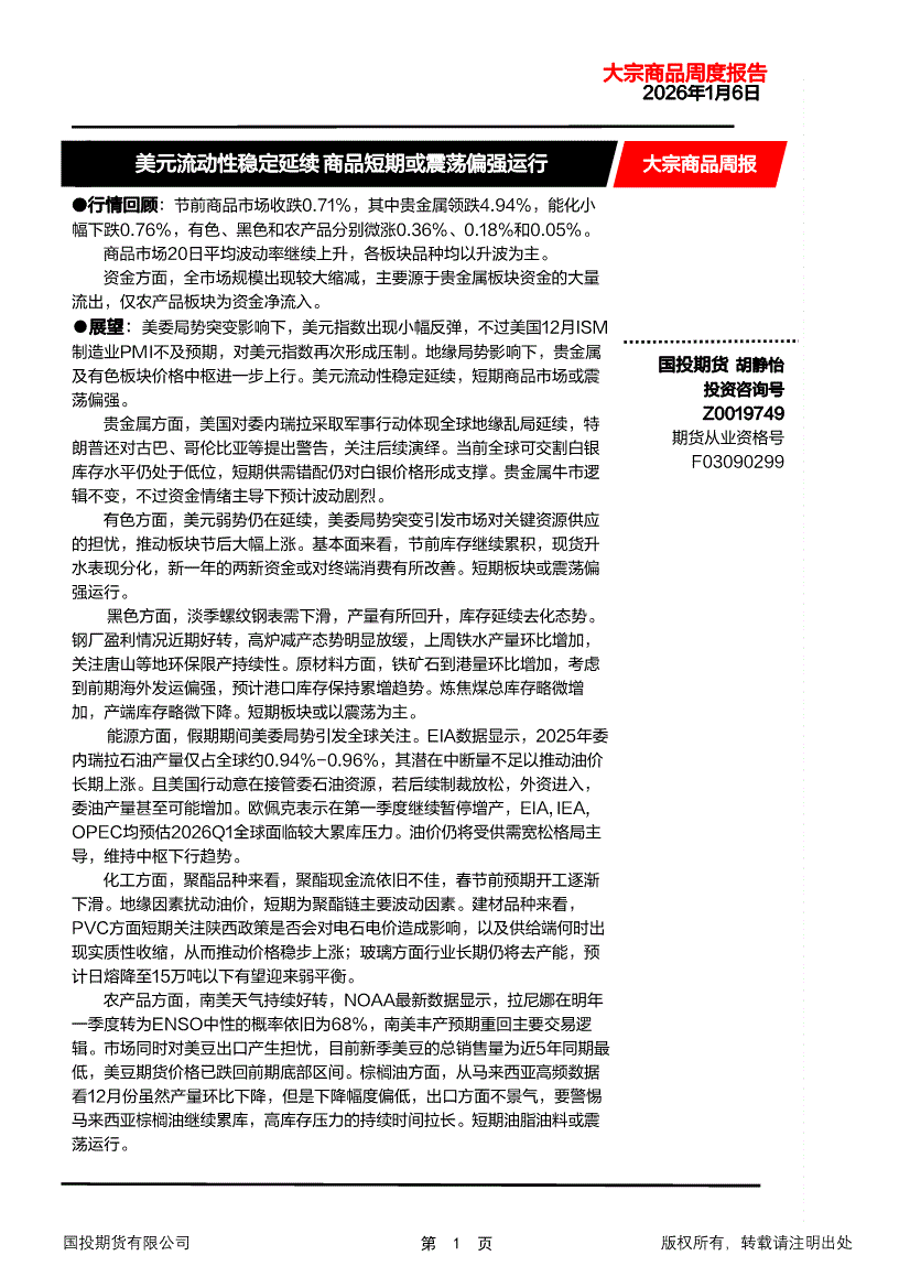 国投期货-大宗商品周报:美元流动性稳定延续,商品短期或震荡偏强运行-260106