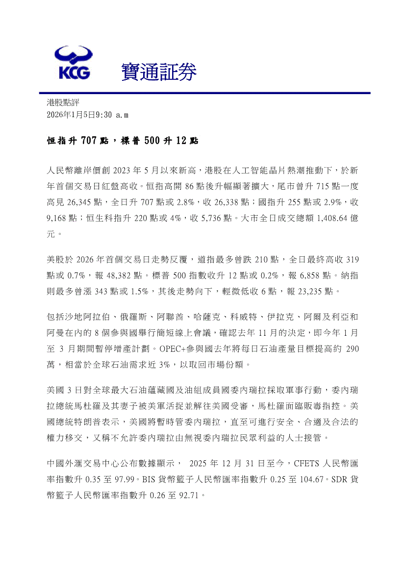 新华汇富-汇富快讯:香港及中国市场日报-260106