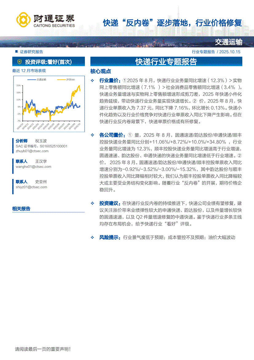 快递行业:财通证券-快递行业专题报告:快递“反内卷”逐步落地,行业价格修复-251015