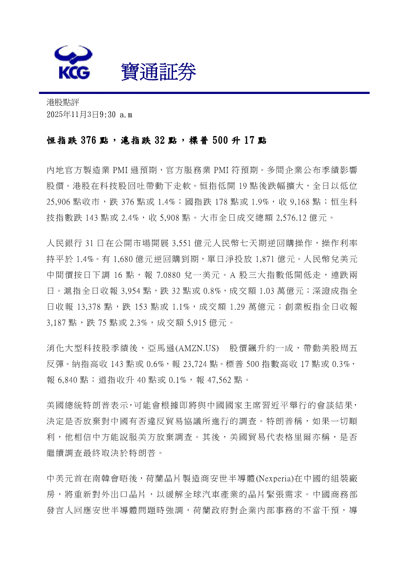 时富金融-每日通讯:香港经济第三季经济增长3.8%-251103