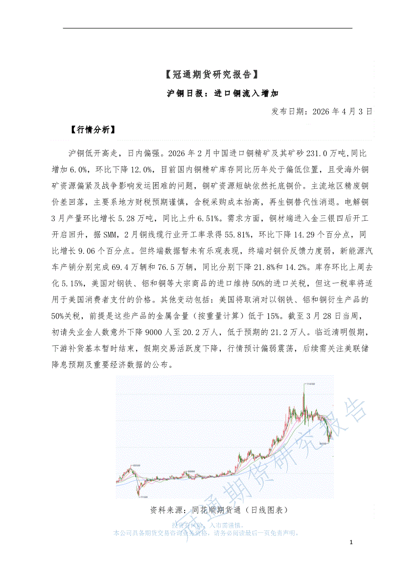 冠通期货-沪铜日报:进口铜流入增加-260403