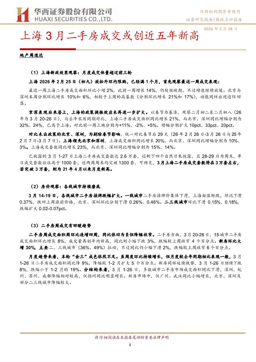 华西证券-上海3月二手房成交或创近五年新高-260328