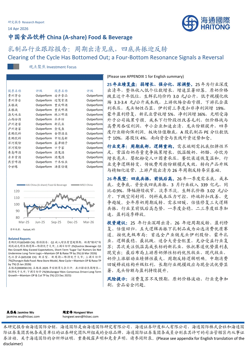 乳制品行业:海通国际-乳制品行业跟踪报告:周期出清见底,四底共振迎反转-260414