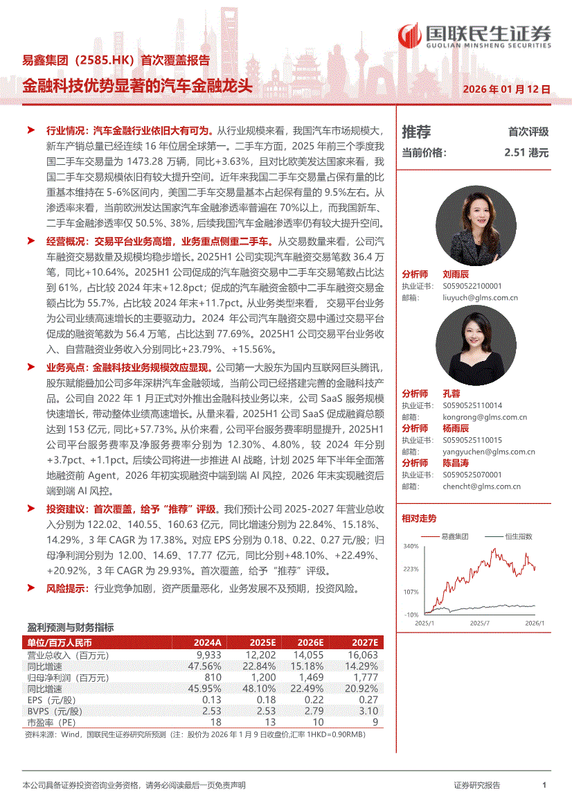 易鑫集团:国联民生证券-易鑫集团-2585.HK-首次覆盖报告:金融科技优势显著的汽车金融龙头-260112