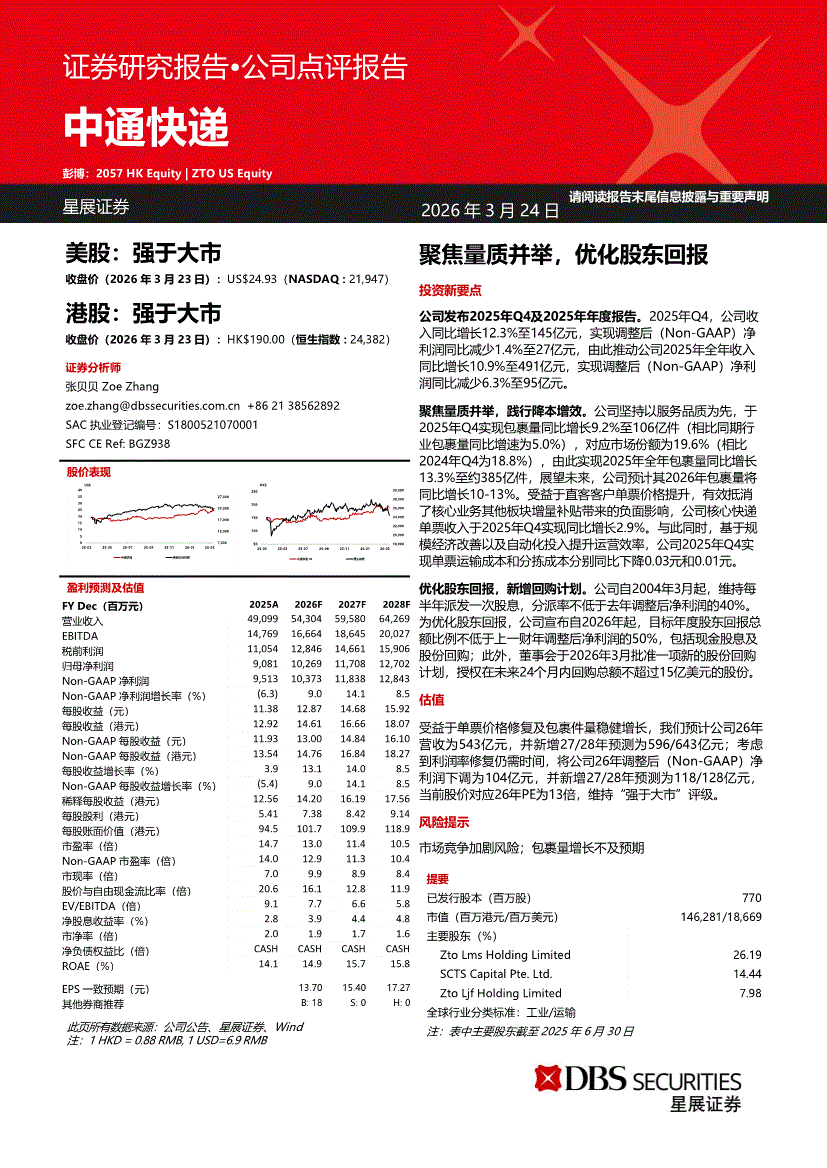 中通快递~W:星展证券-中通快递~W-2057.HK-聚焦量质并举,优化股东回报-260324