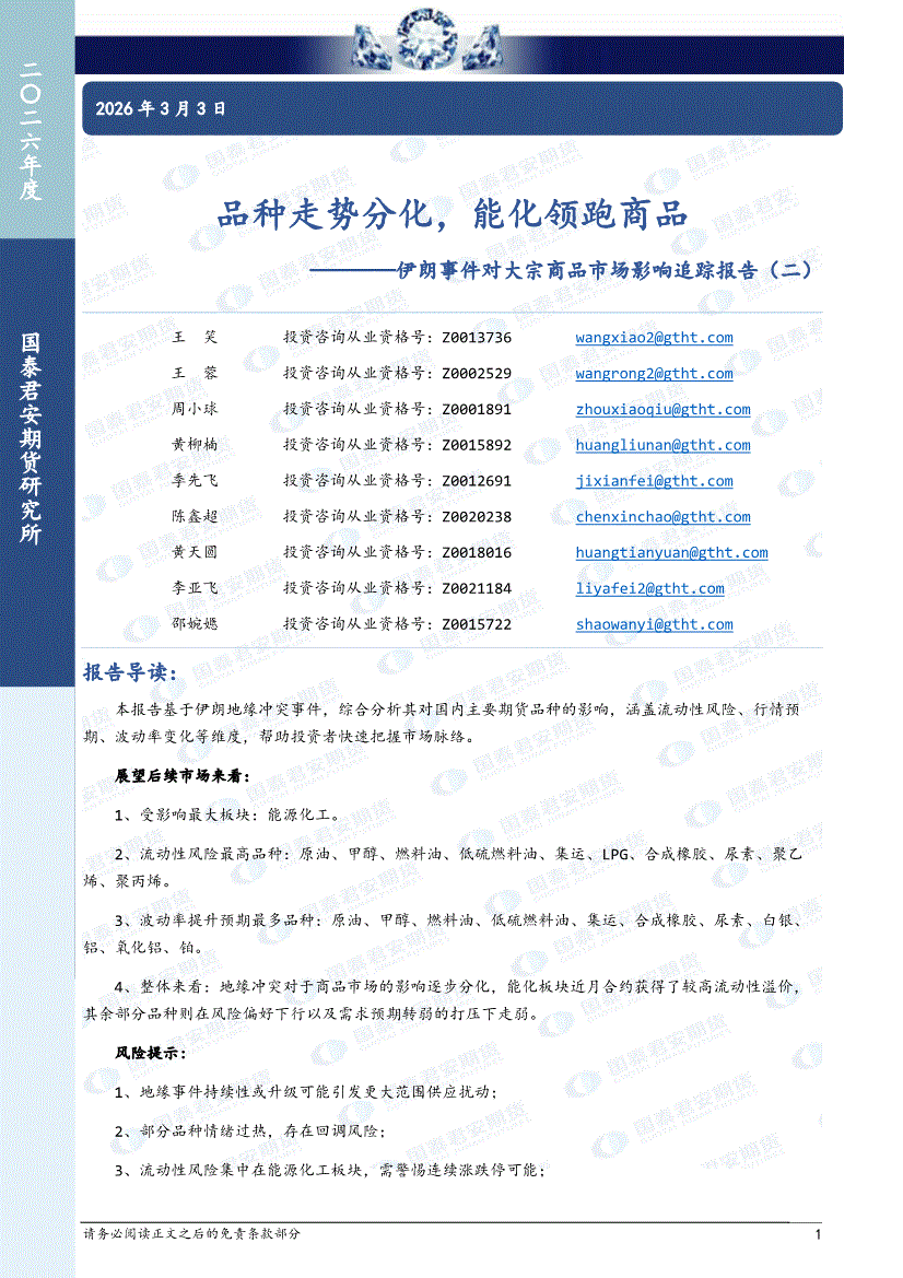 国泰君安期货-伊朗事件对大宗商品市场影响追踪报告(二):品种走势分化,能化领跑商品-260303