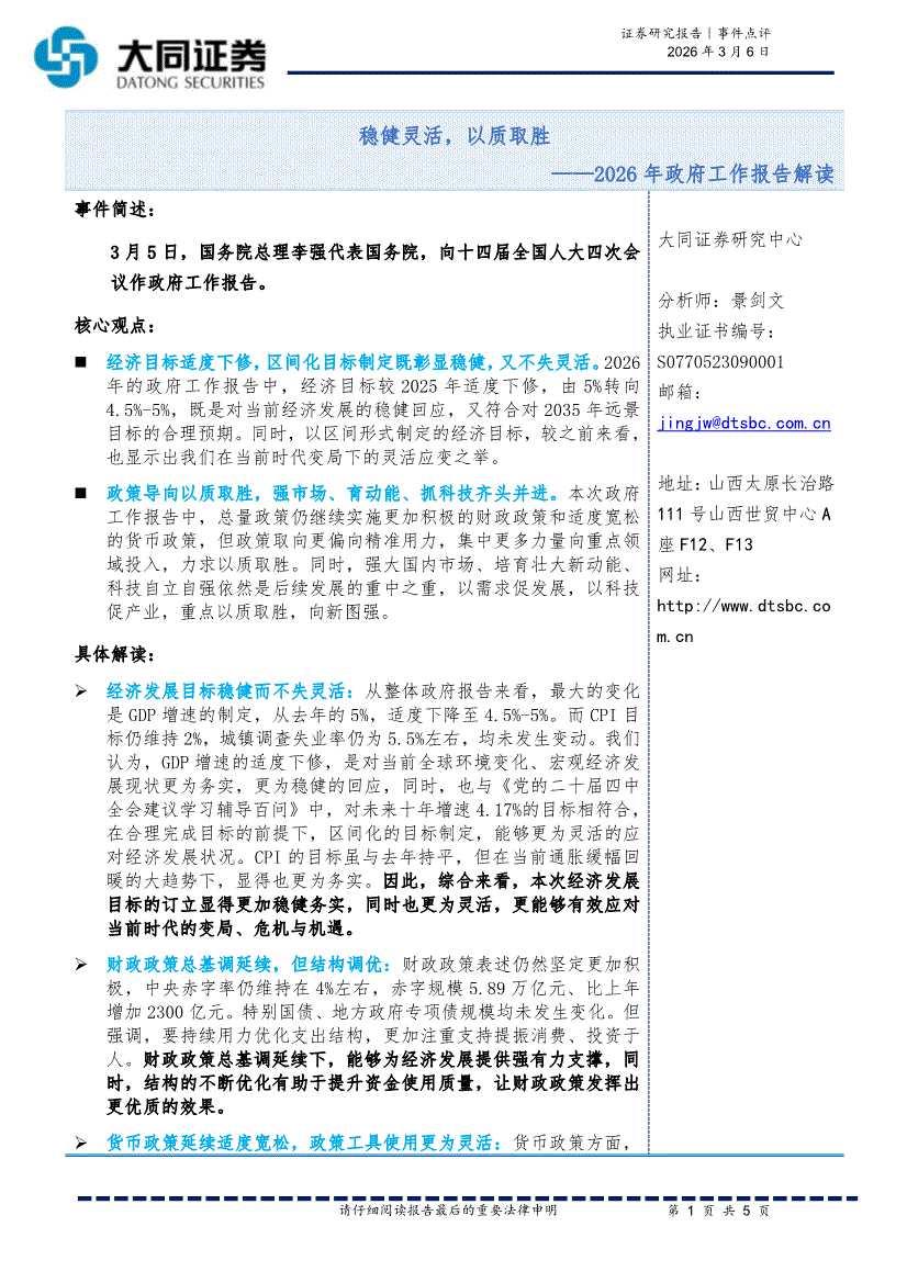 大同证券-稳健灵活,以质取胜——2026年政府工作报告解读-260306