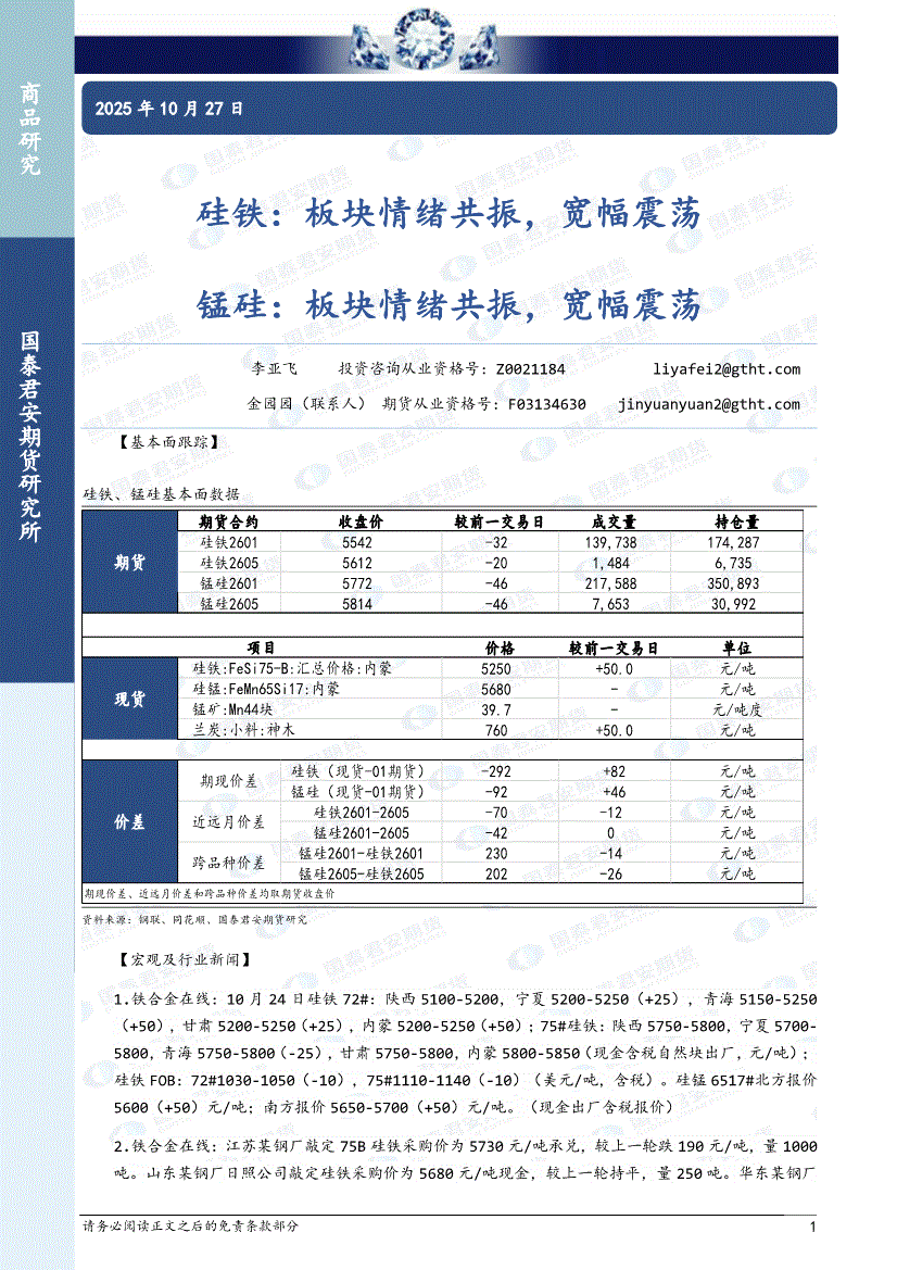 国泰君安期货-硅铁:板块情绪共振,宽幅震荡,锰硅,板块情绪共振,宽幅震荡-251027