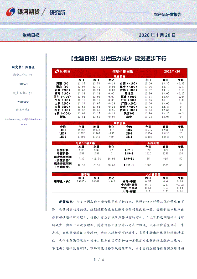 银河期货-生猪日报:出栏压力减少,现货逐步下行-260120