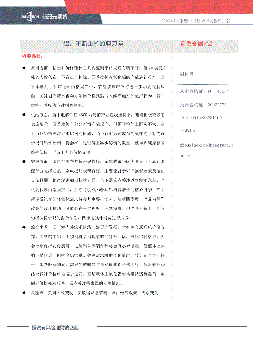 新纪元期货-2025年四季度中国期货市场投资报告:铝,不断走扩的剪刀差-250924