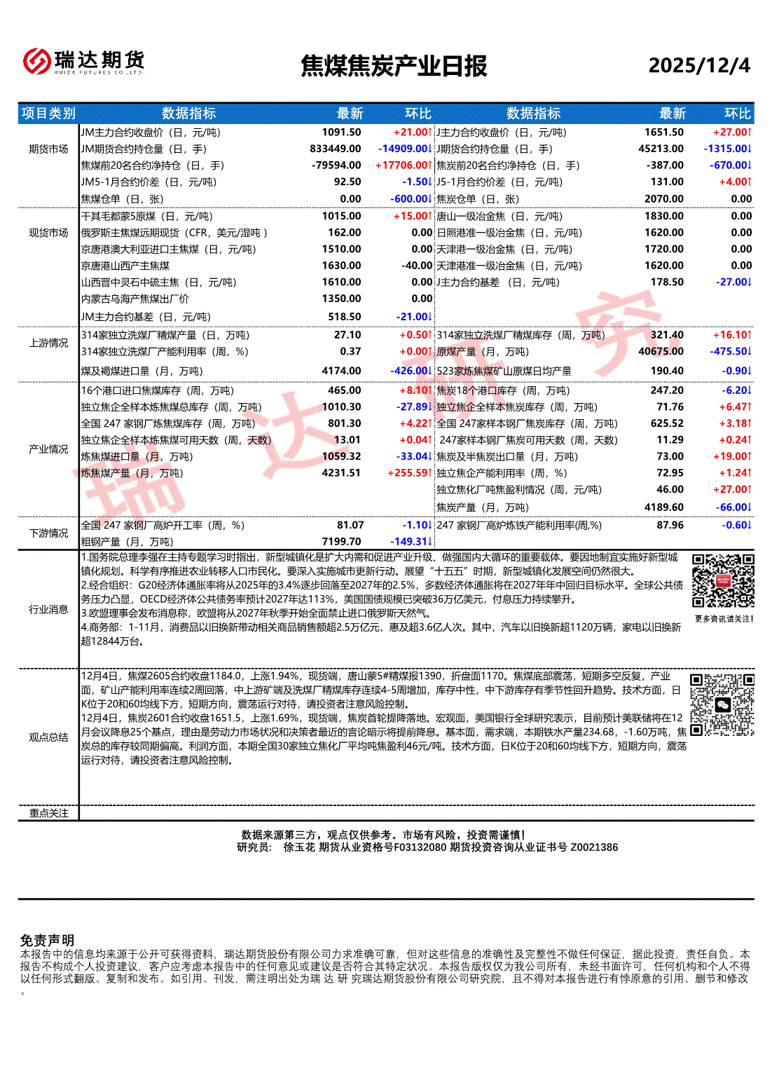 瑞达期货-焦煤焦炭产业日报-251204