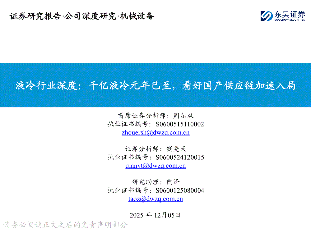机械设备行业:东吴证券-液冷行业深度:千亿液冷元年已至,看好国产供应链加速入局-251205