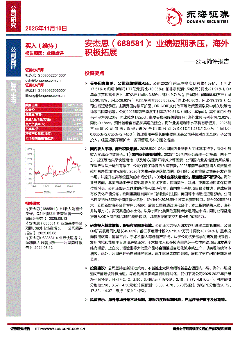 安杰思:东海证券-安杰思-688581-公司简评报告:业绩短期承压,海外积极拓展-251110