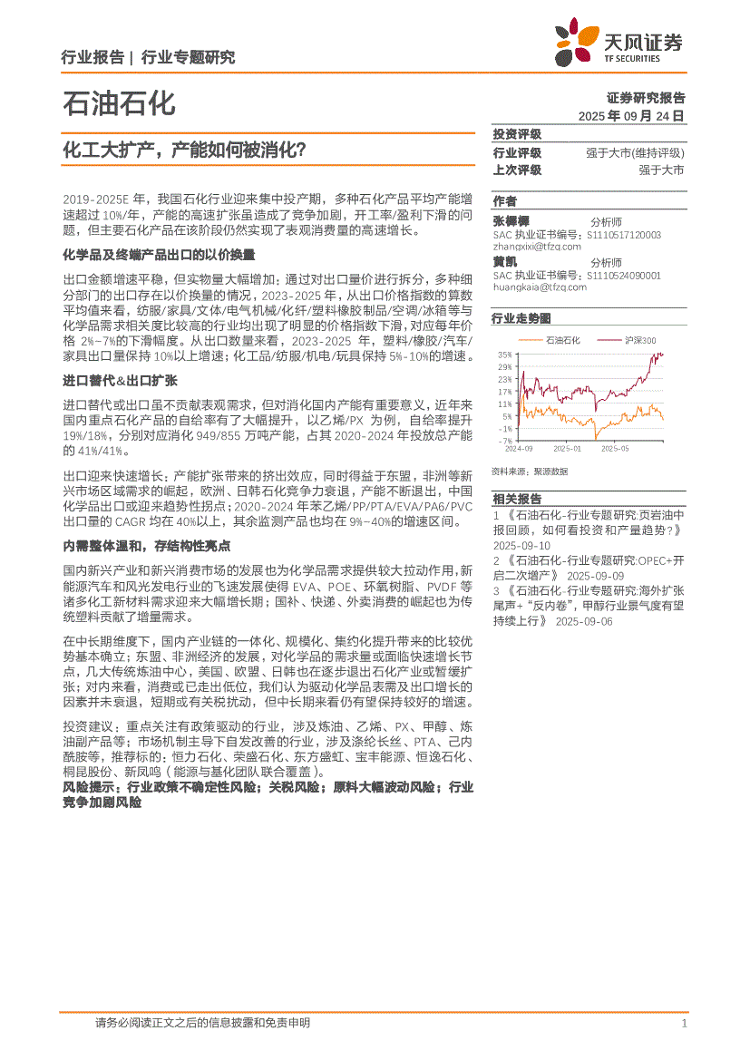 石油石化行业:天风证券-石油石化行业专题研究:化工大扩产,产能如何被消化?-250924