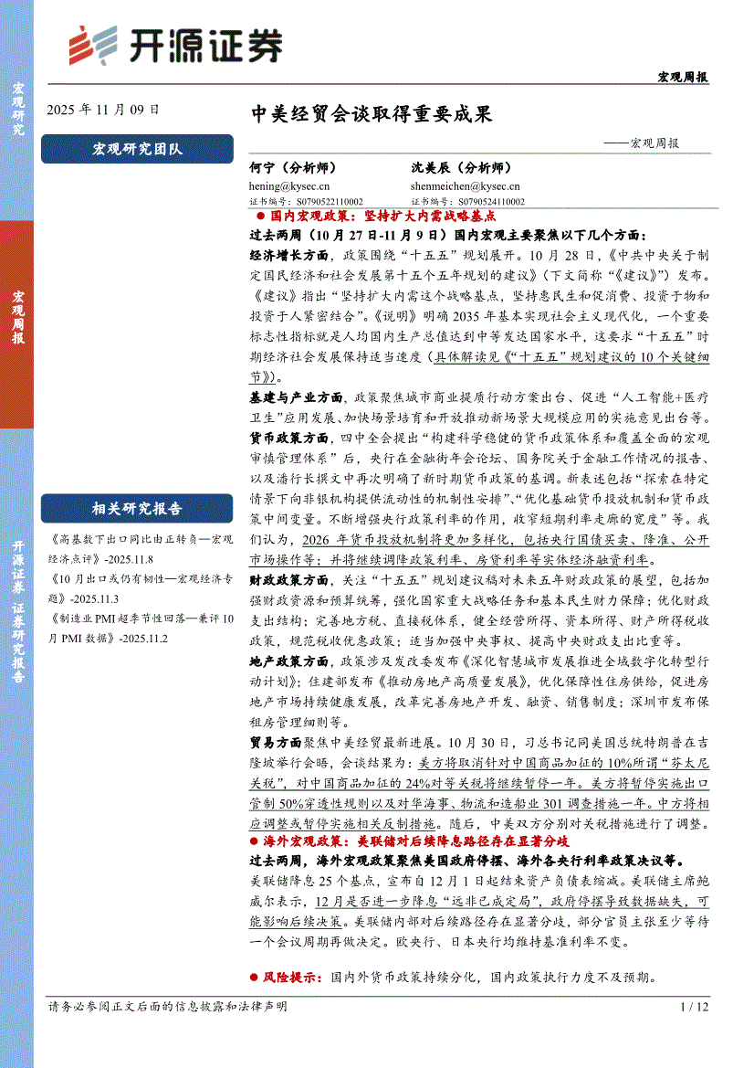 开源证券-宏观周报:中美经贸会谈取得重要成果-251109