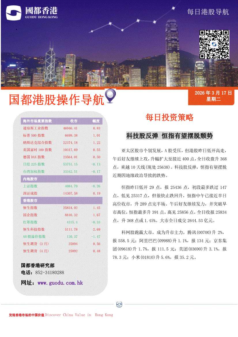 国都证券(香港)-每日港股导航-260317
