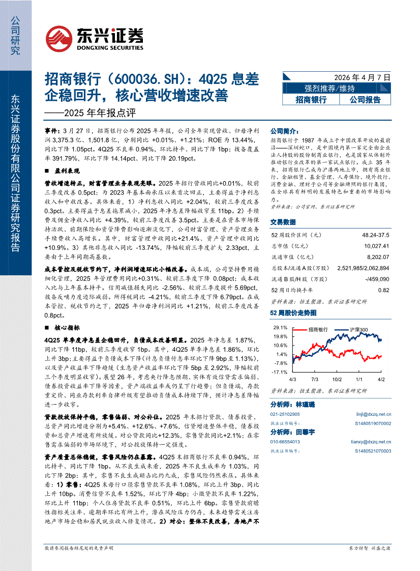 招商银行:东兴证券-招商银行-600036-2025年年报点评:4Q25息差企稳回升,核心营收增速改善-260407
