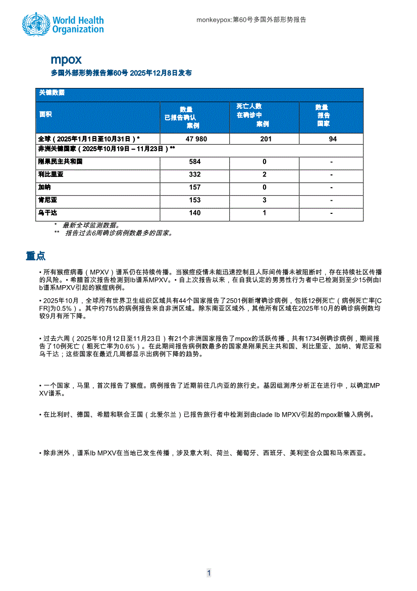 世界卫生组织-猴痘多国疫情,外部形势报告第60号(英译中)-251208