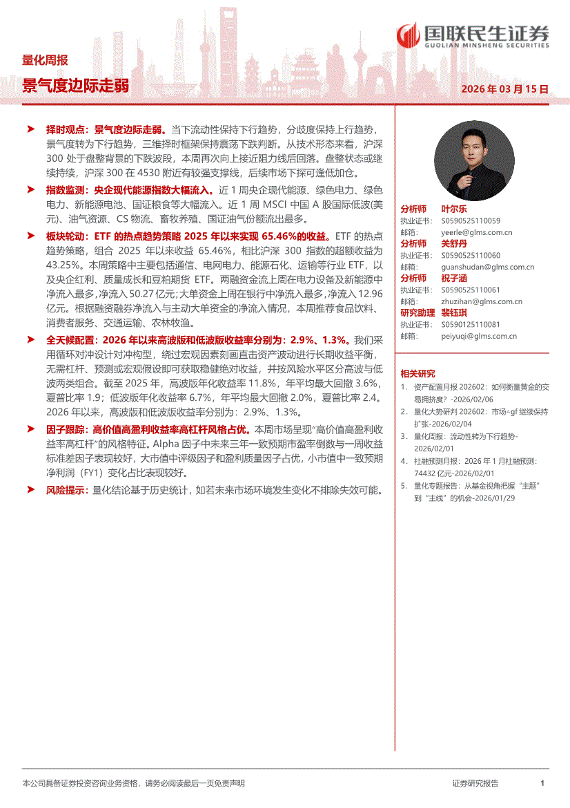 国联民生证券-量化周报:景气度边际走弱-260315