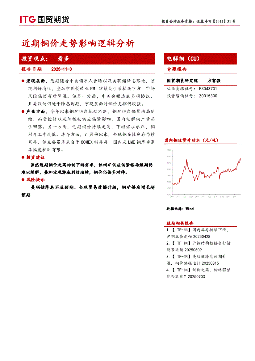 国贸期货-近期铜价走势影响逻辑分析-251103
