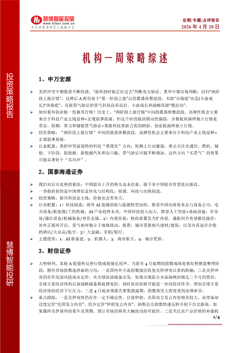 慧博智能投研-机构一周策略综述-260420