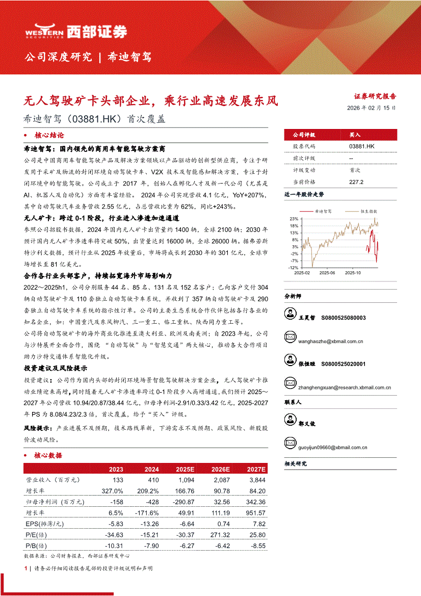 希迪智驾:西部证券-希迪智驾-3881.HK-首次覆盖:无人驾驶矿卡头部企业,乘行业高速发展东风-260215