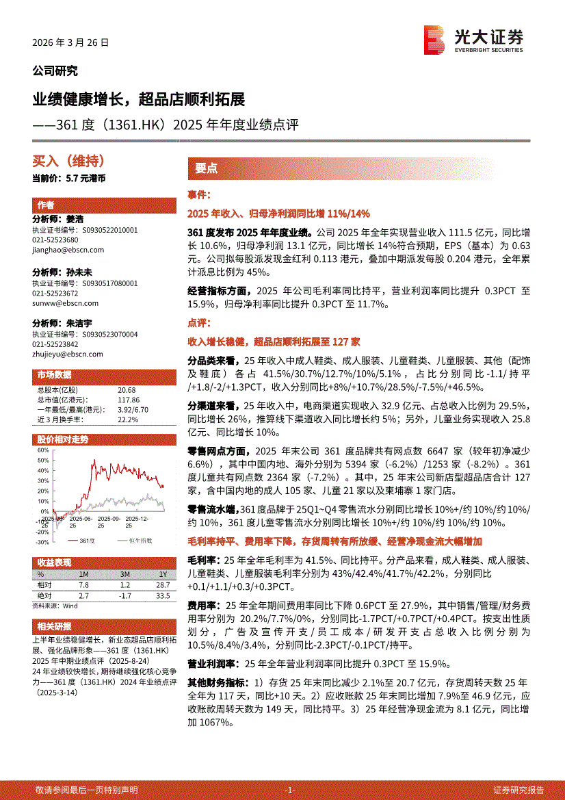 361度:光大证券-361度-1361.HK-2025年年度业绩点评:业绩健康增长,超品店顺利拓展-260326