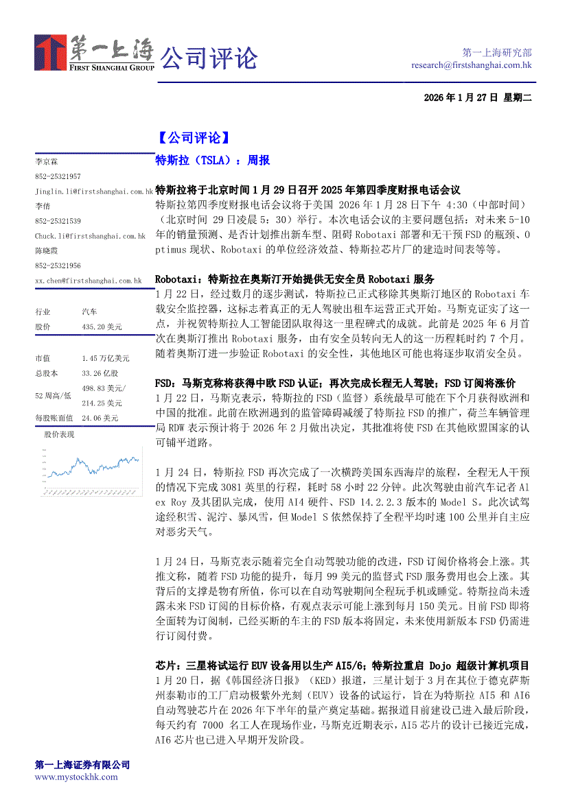 特斯拉:第一上海-特斯拉-TSLA.US-周报-260127