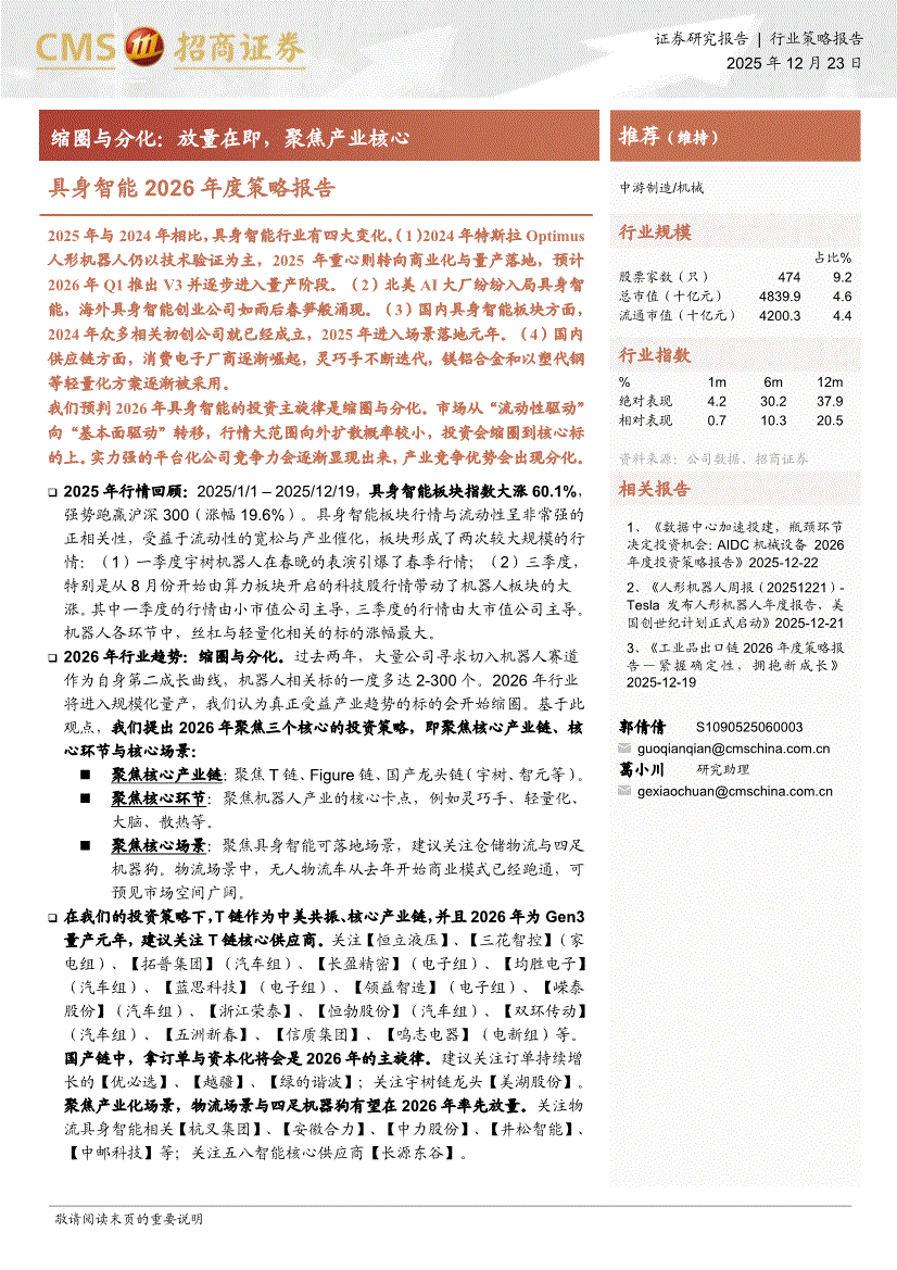机械行业:招商证券-机械行业具身智能2026年度策略报告:缩圈与分化,放量在即,聚焦产业核心-251223
