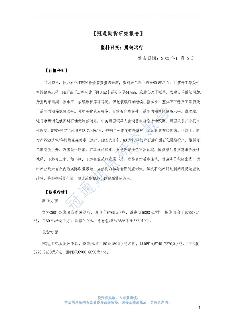 冠通期货-聚烯烃周报-251117