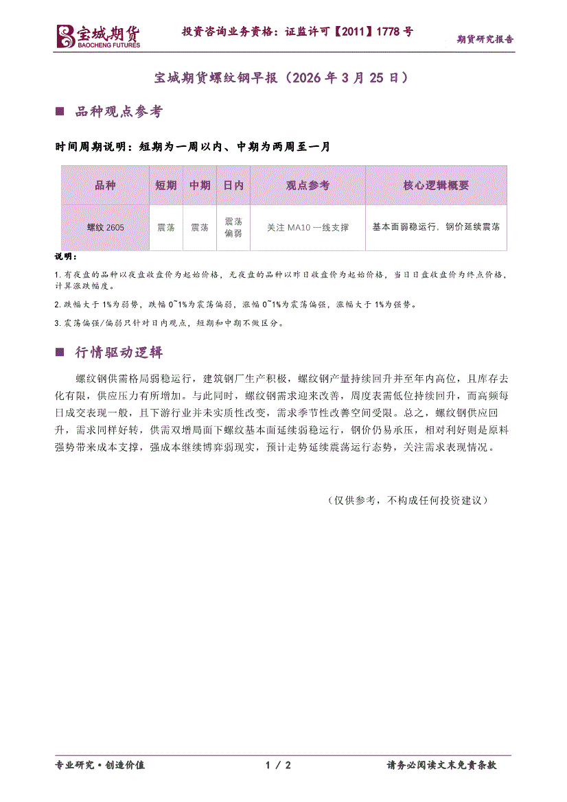 宝城期货-钢材&铁矿石日报:产业格局弱稳,钢矿高位震荡-260326