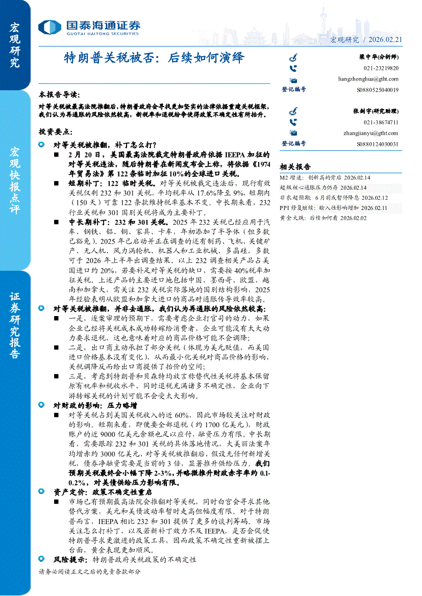 国泰海通证券-宏观快报点评:特朗普关税被否,后续如何演绎-260221
