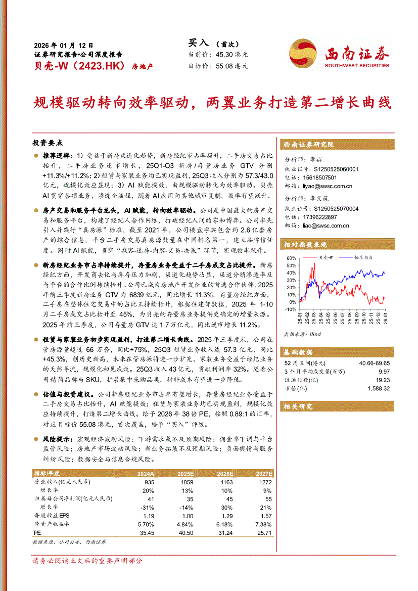 贝壳~W:西南证券-贝壳~W-2423.HK-规模驱动转向效率驱动,两翼业务打造第二增长曲线-260112