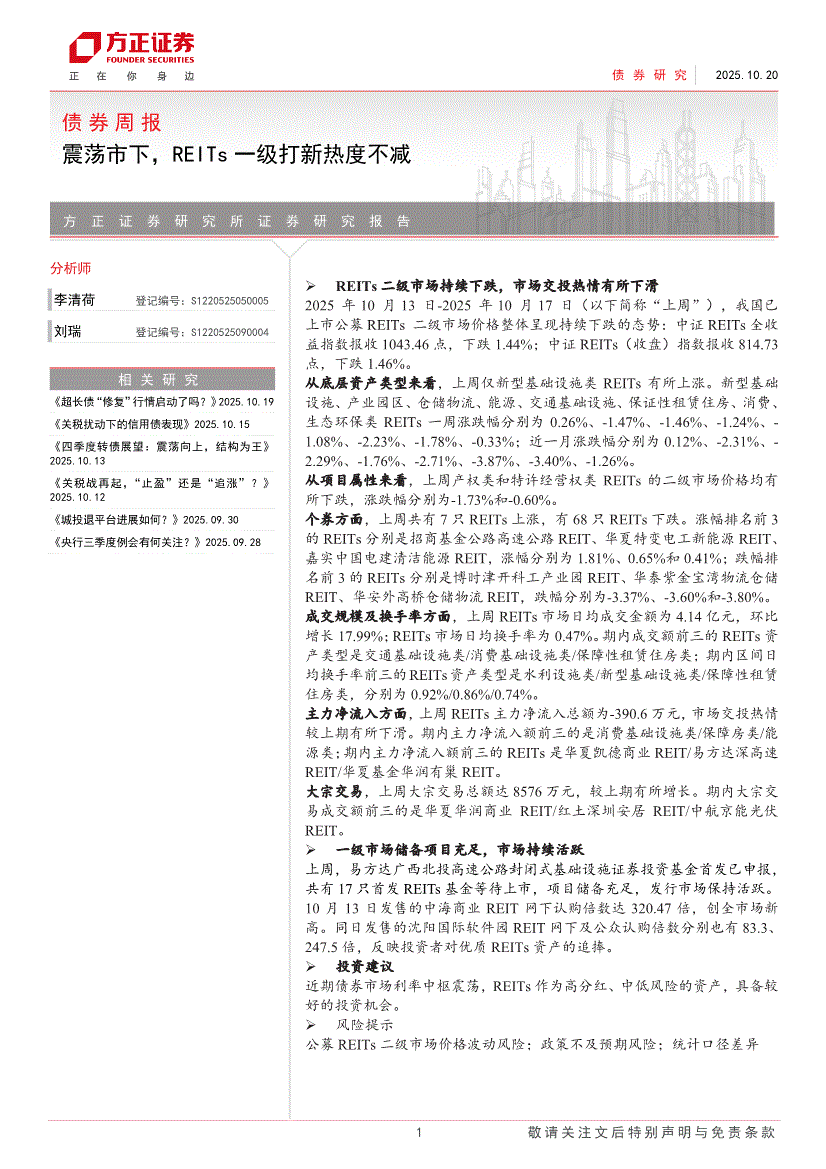 方正证券-债券周报:震荡市下,REITs一级打新热度不减-251020