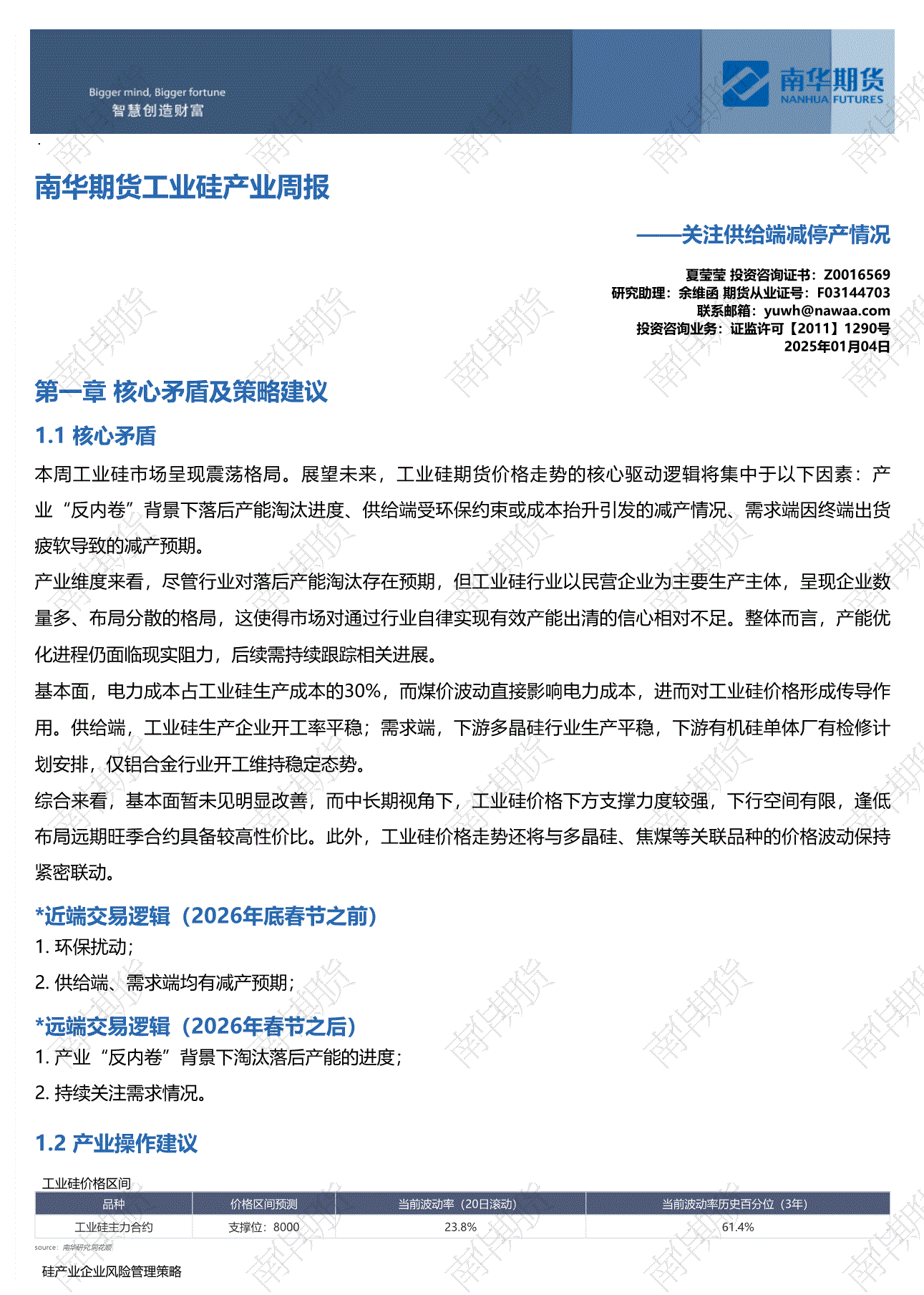 南华期货-工业硅产业周报:关注供给端减停产情况-260104