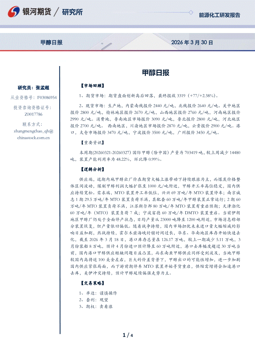 银河期货-甲醇日报-260401