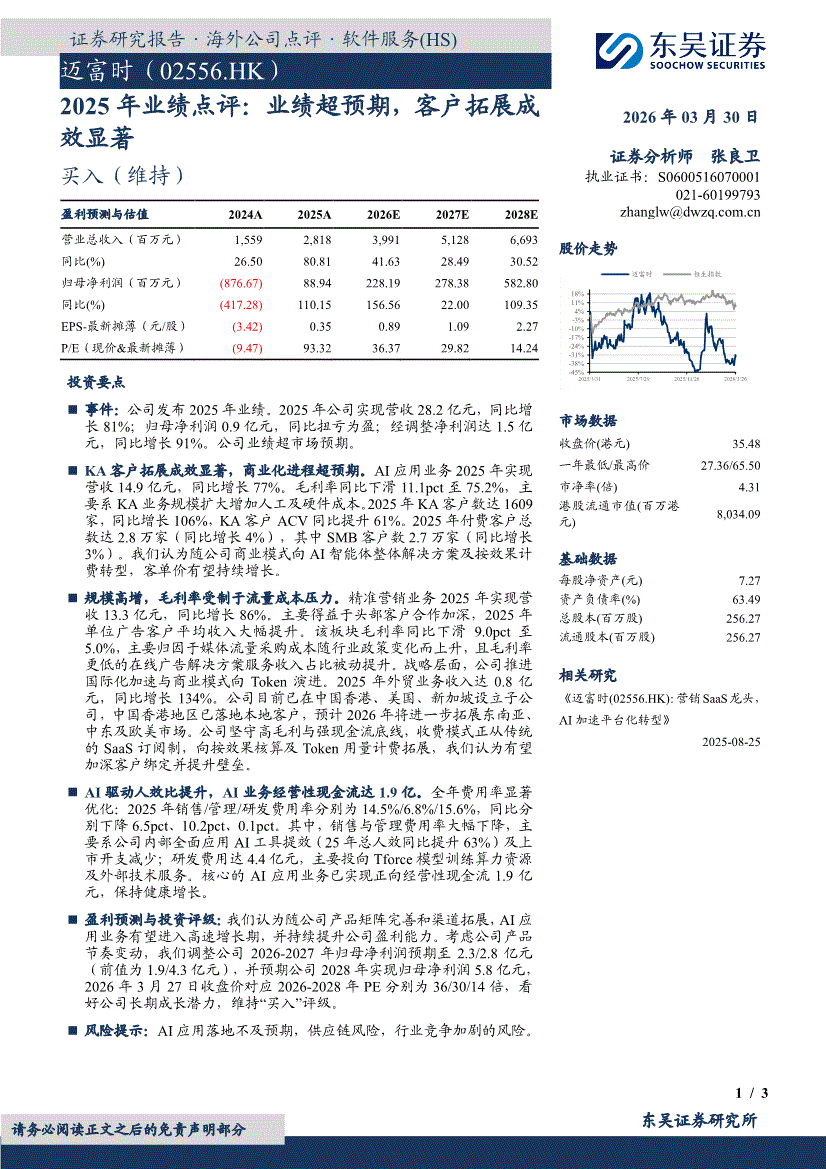 迈富时:东吴证券-迈富时-2556.HK-2025年业绩点评:业绩超预期,客户拓展成效显著-260330