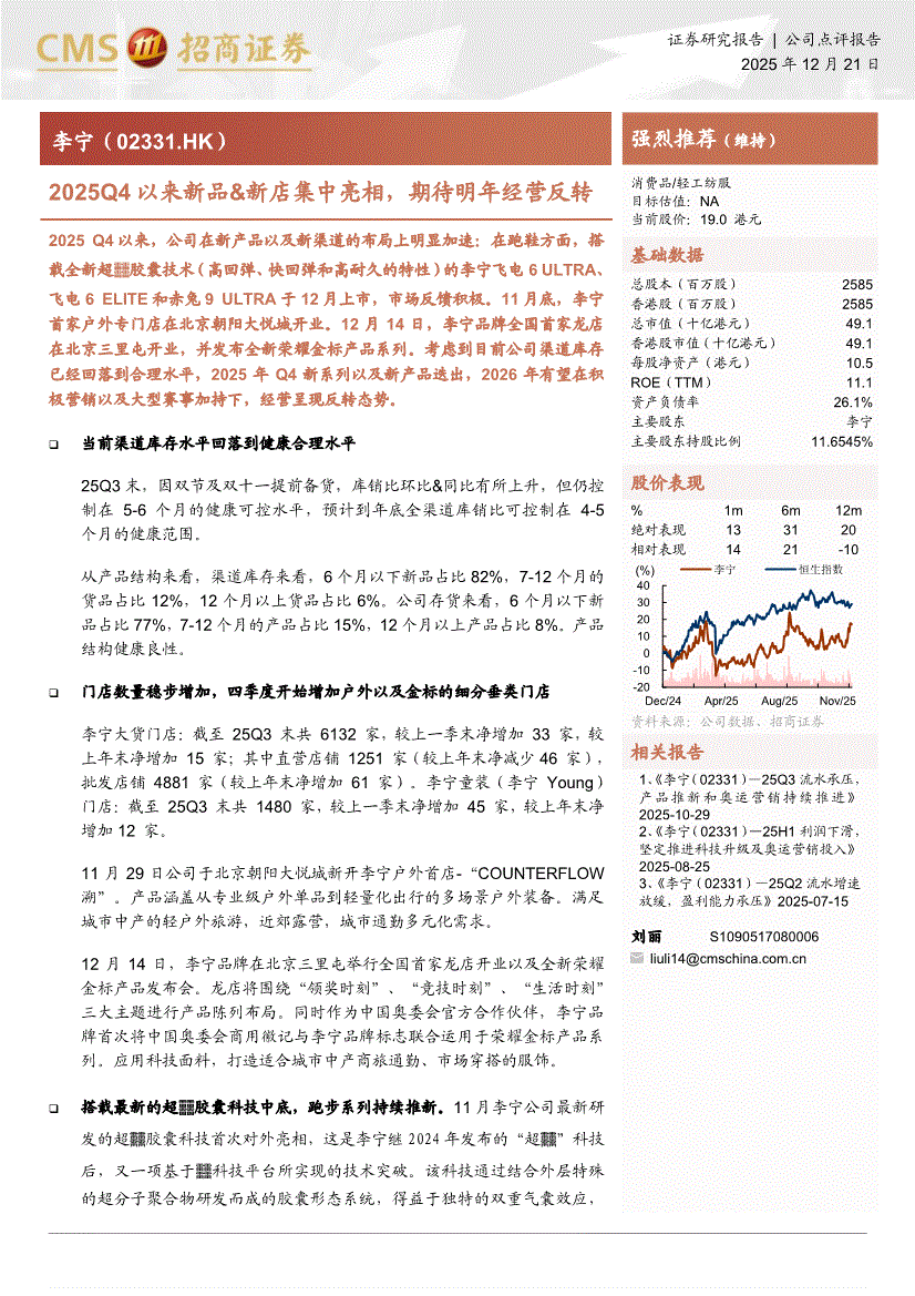 李宁:招商证券-李宁-2331.HK-2025Q4以来新品&新店集中亮相,期待明年经营反转-251221