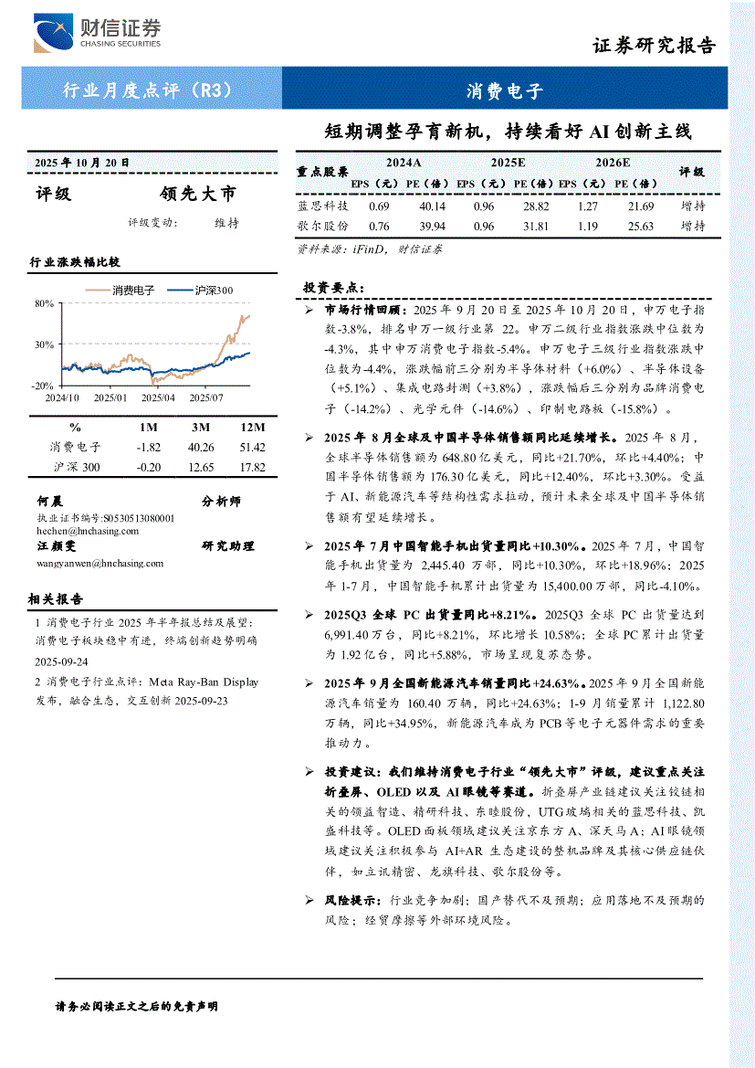 消费电子行业:财信证券-消费电子行业月度点评:短期调整孕育新机,持续看好AI创新主线-251020