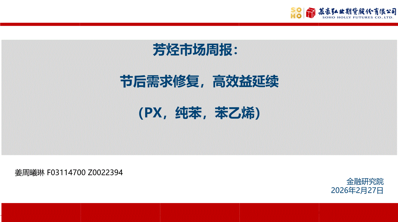 弘业期货-芳烃市场周报:节后需求修复,高效益延续(PX,纯苯,苯乙烯)-260227