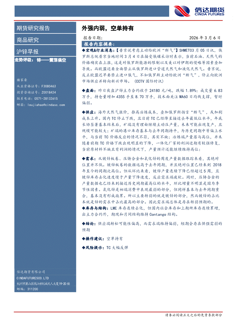 信达期货-沪锌早报:外强内弱,空单持有-260306