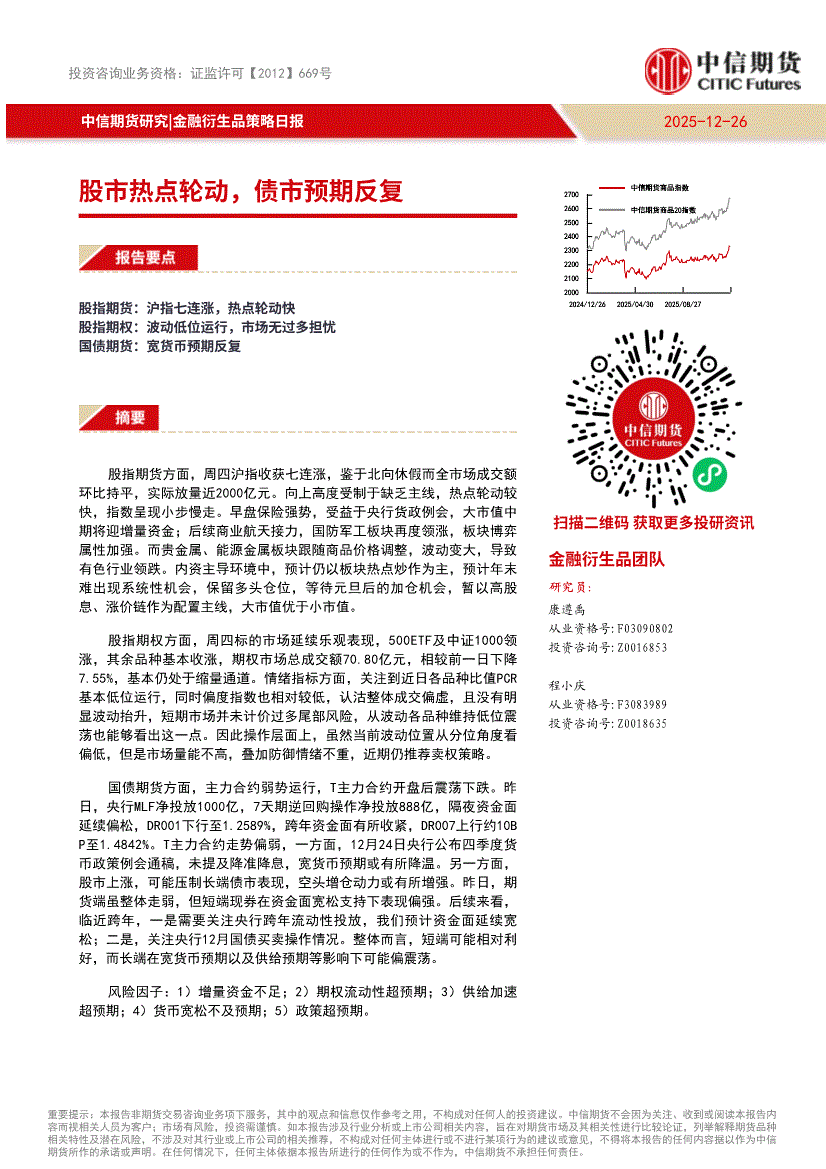 中信期货-金融衍生品策略日报:股市热点轮动,债市预期反复-251226