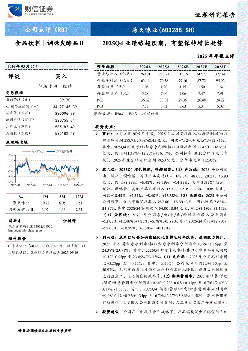 海天味业:财信证券-海天味业-603288-2025年年报点评:2025Q4业绩略超预期,有望保持增长趋势-260327