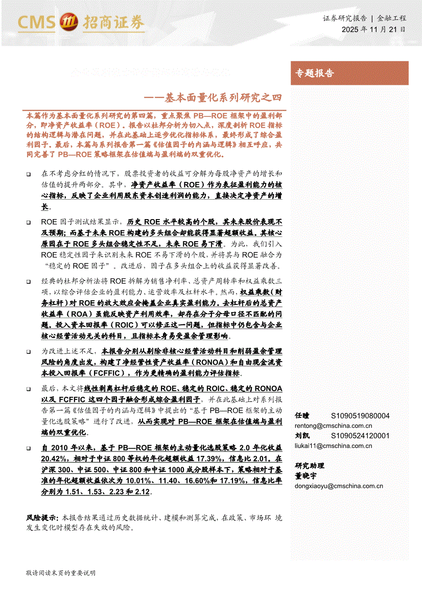 招商证券-基本面量化系列研究之四:企业盈利能力评价指标的演进与优化-251121