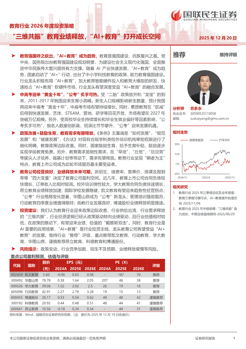教育行业:国联民生证券-教育行业2026年度投资策略:“三维共振”教育业绩释放,“AI+教育”打开成长空间-251220